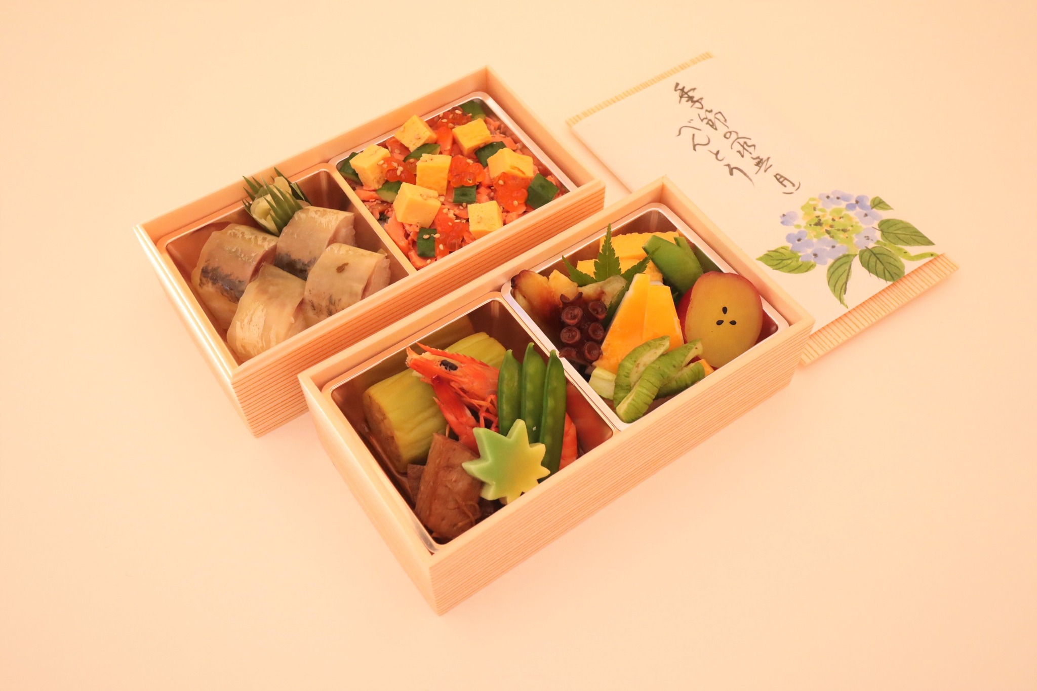 6月(水無月)は、夏に向けての食材をふんだんに盛り込んだ弁当となっております。